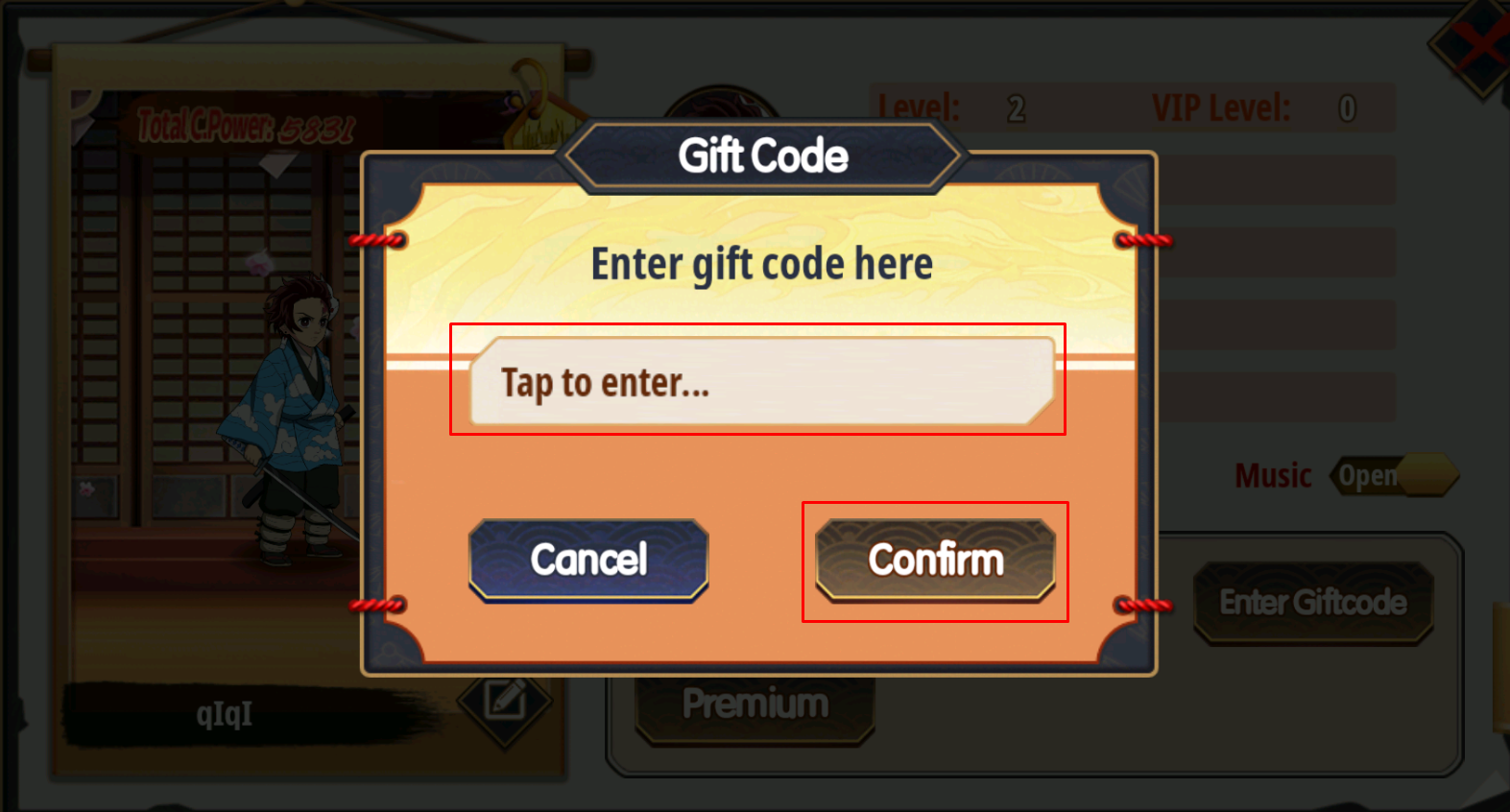 - Retrieve the giftcode from the Fanpage or Group, then enter it and click “Confirm.”