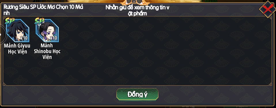 | 49,99$ | Super SP Select 5-Shard Chest x8, Attack Speed Relic Chest x1, Lv.5 Resistance Stone x1, Akaza Shard x50 | |||||||